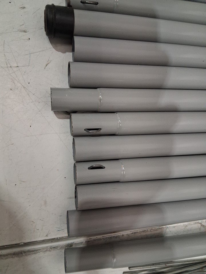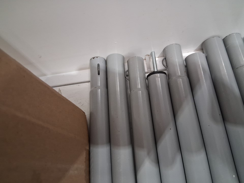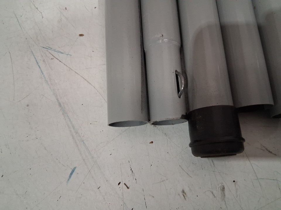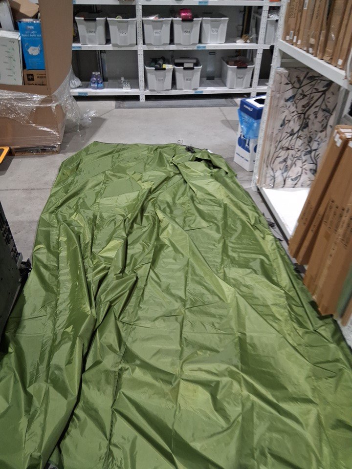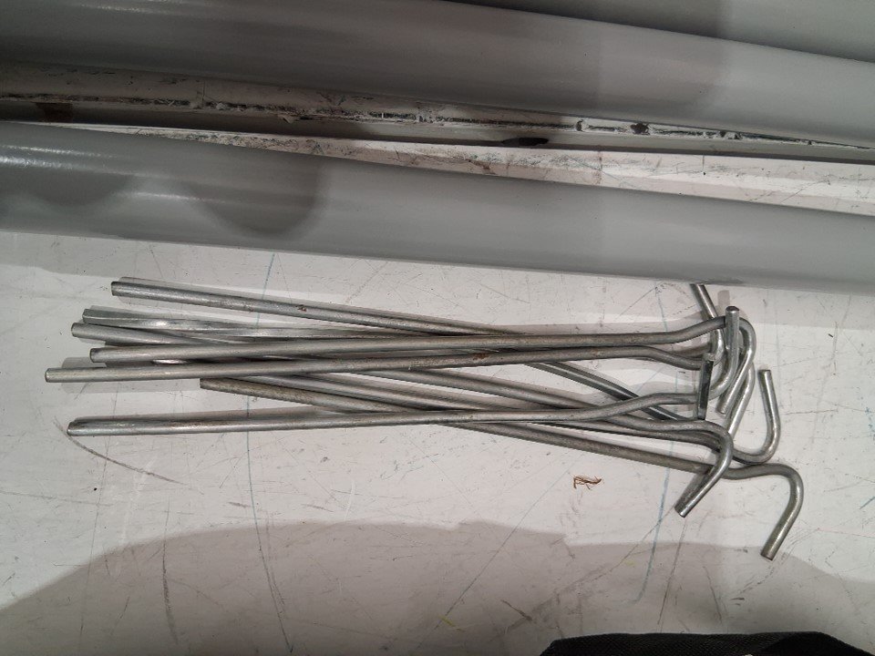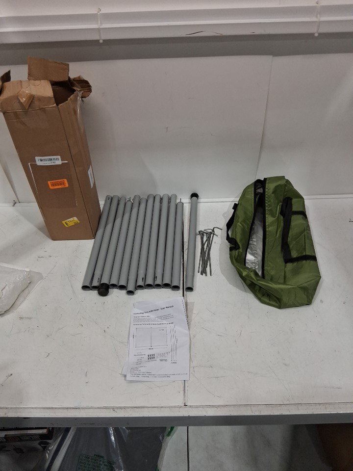 there is some scratching and scuff marks on the connection parts of the poles and along the length of the poles, floor spikes / tarp are both dirty this indicates prior use