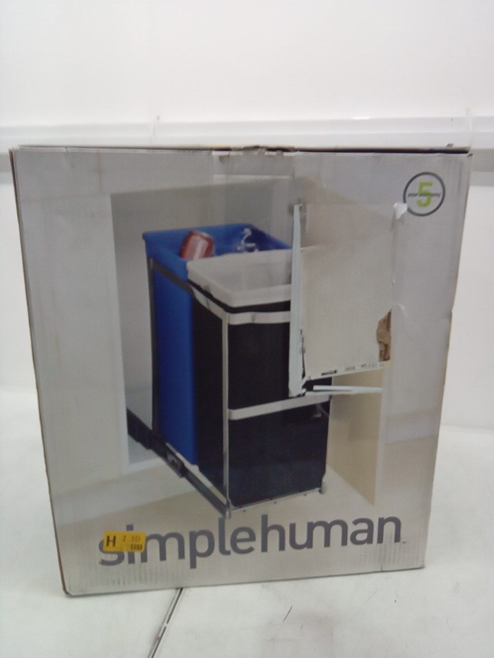 simplehuman Dual Compartment Under Counter Kitchen Cabinet Pull-Out Recycling Bin and Trash Can - 35 Liter / 9.3 Gallon - chrome