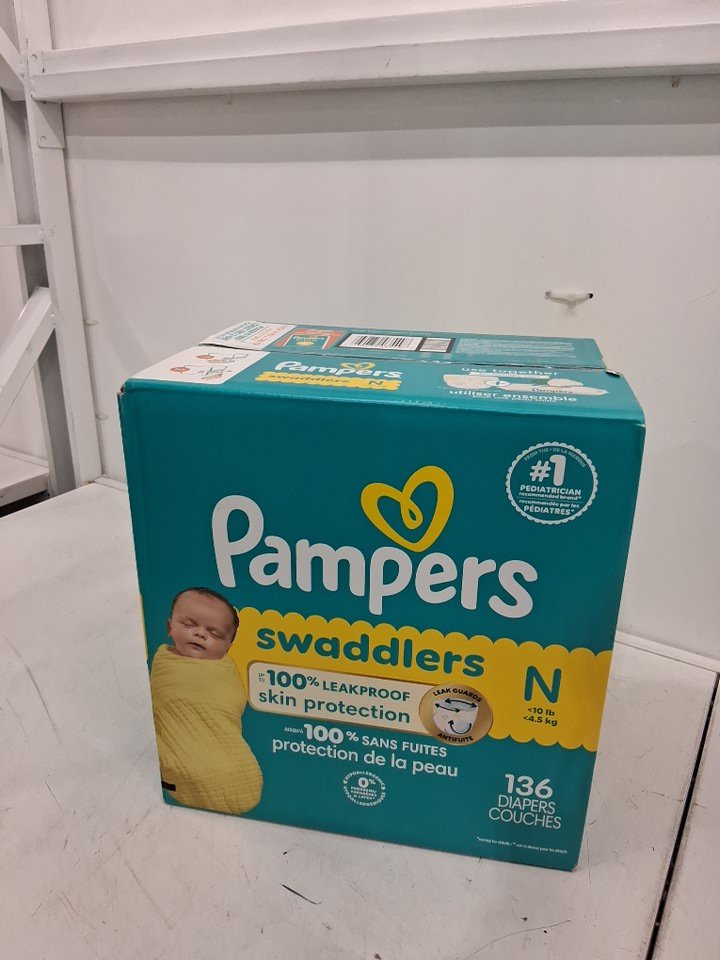 136PK PAMPERS SWADDLERS DIAPERS - NEWBORN SIZE 0