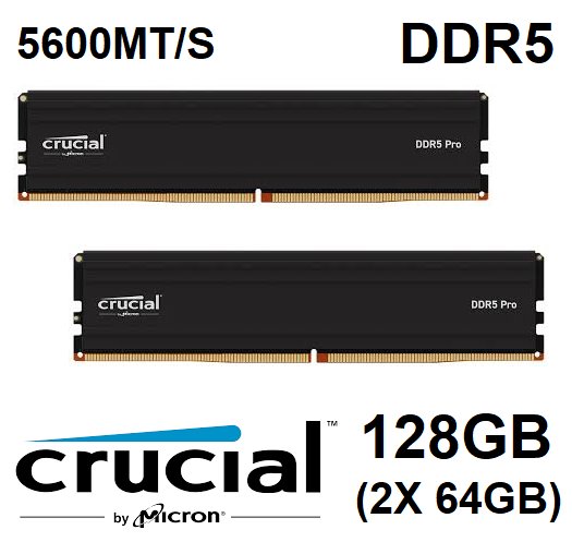 2pk crucial by micron 2X 64GB (128GB TOTAL) DDR5 RAM Memory Module - For Desktop PC (MODEL: cp64g56c46u5.M16B1)