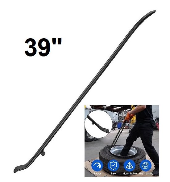 tire mount and demount bar for car or truck - solid iron - 39" long - black
