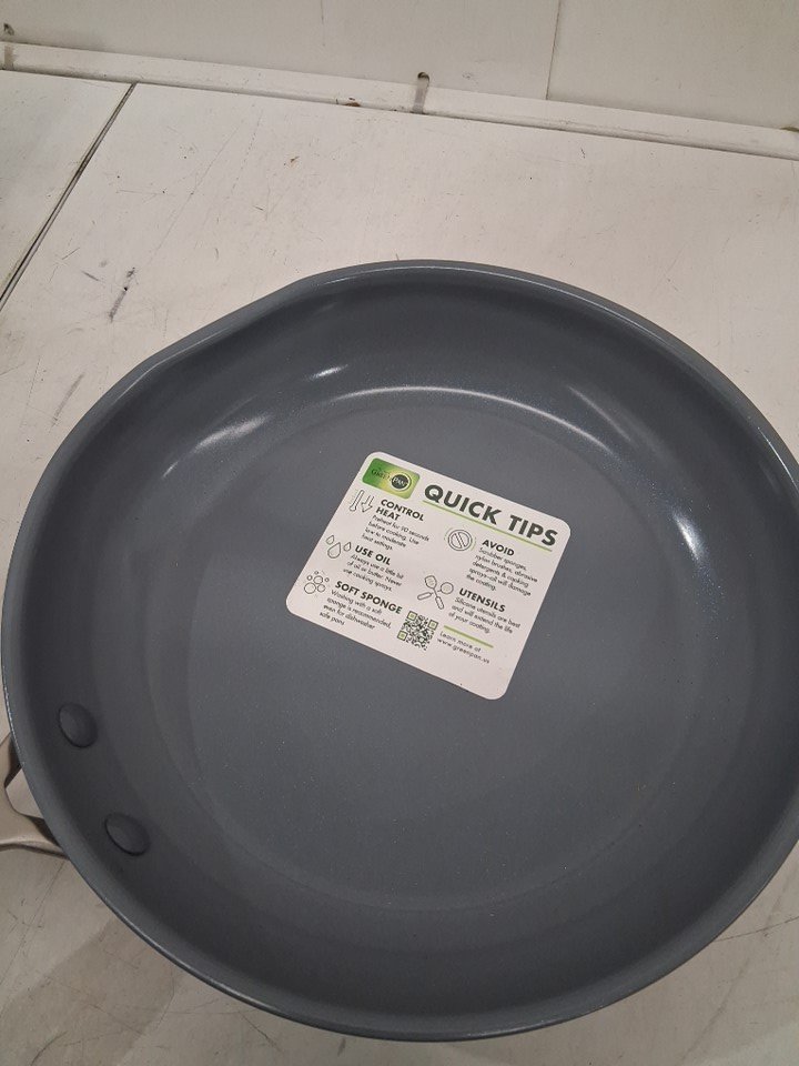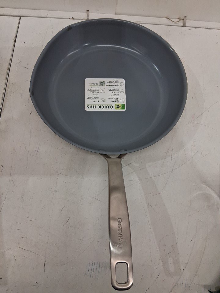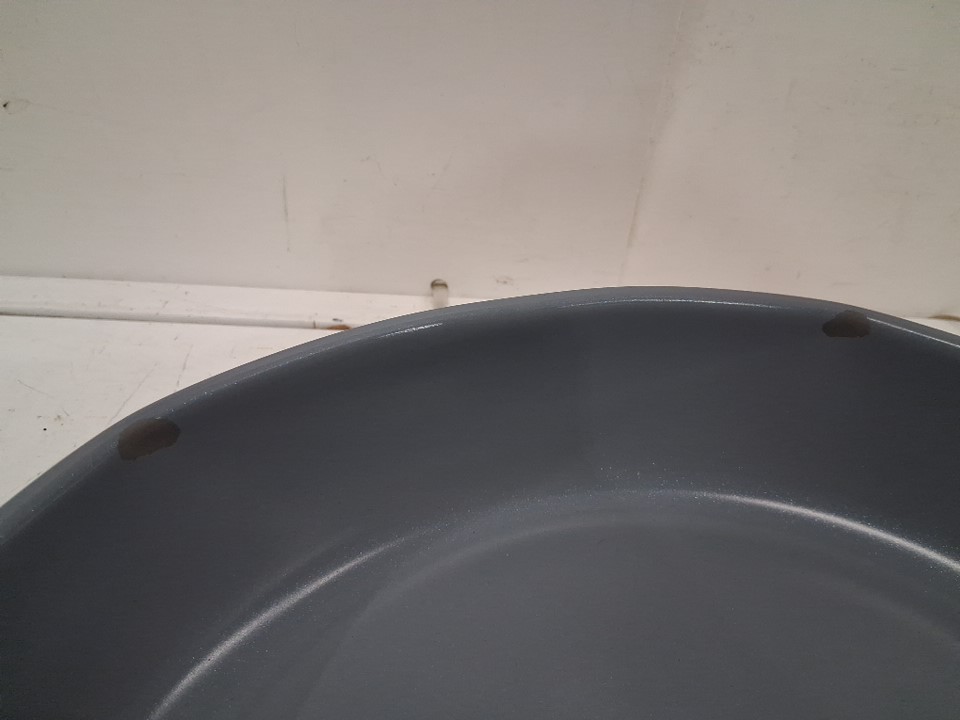 upon inspection we found that during shipment the pans in one corner have been bent, on one of the pans the ceramic coating has been chipped. please see photos