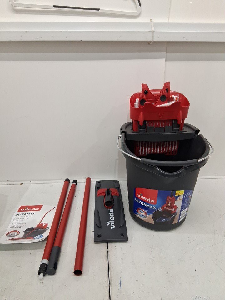 VILEDA ULTRAMAX FLAT MOP and BUCKET SYSTEM - 10L - RED/BLACK (MODEL: 161556)