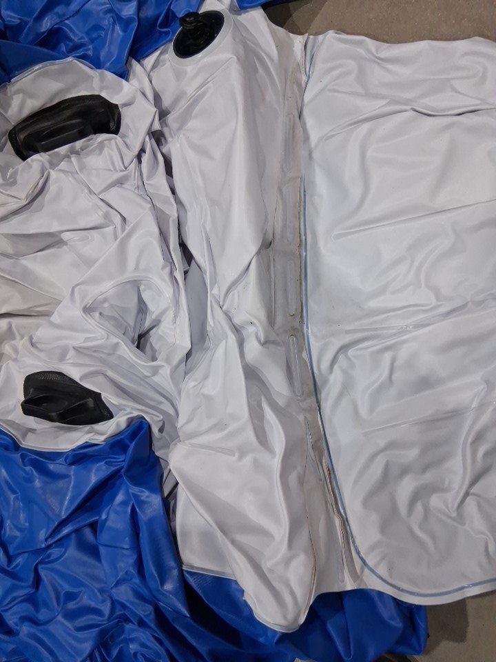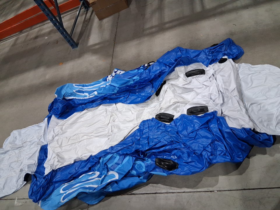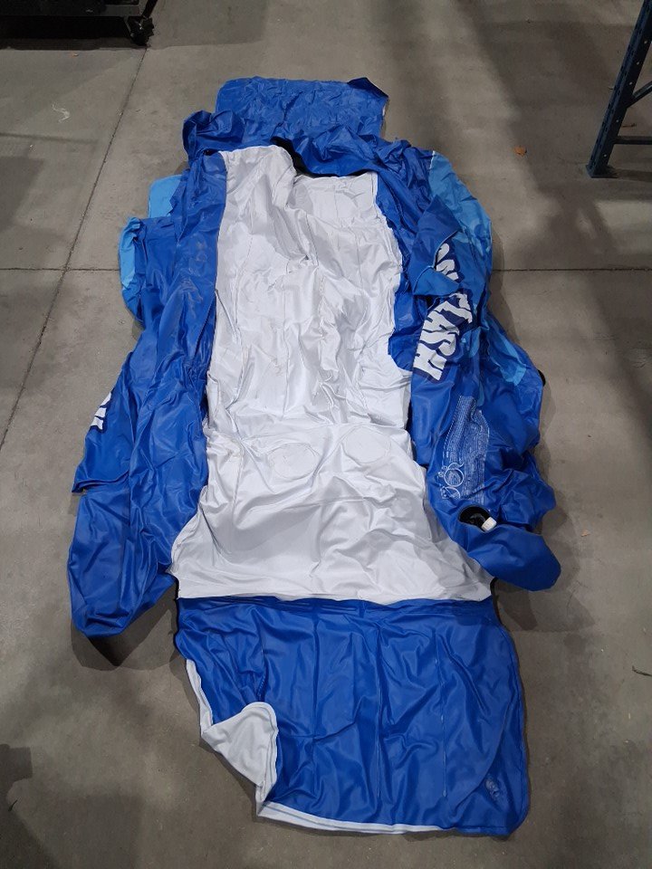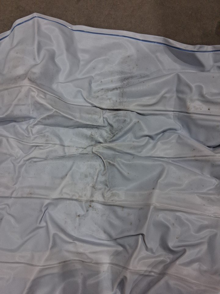 There is some water stains and marks on the item as well as a bit of water residue, clean before use. The item will also be dusty from being inspected on our warehouse floor.