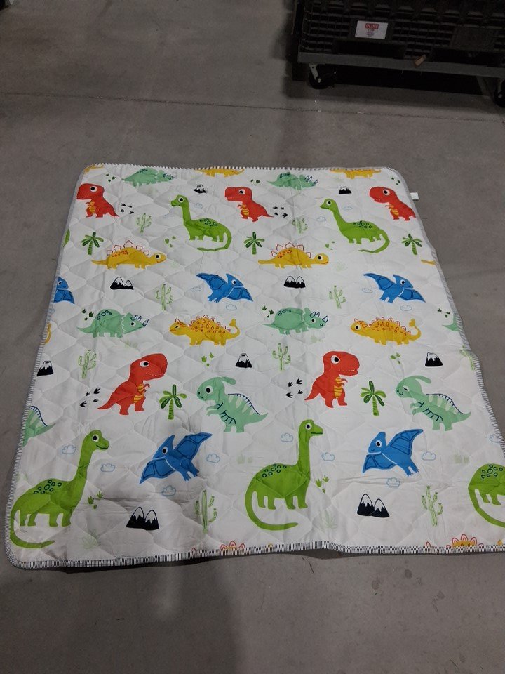 baby's play mat with non slip bottom - 5ft x 69" - white / dino