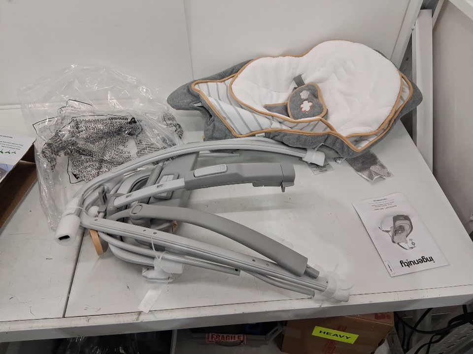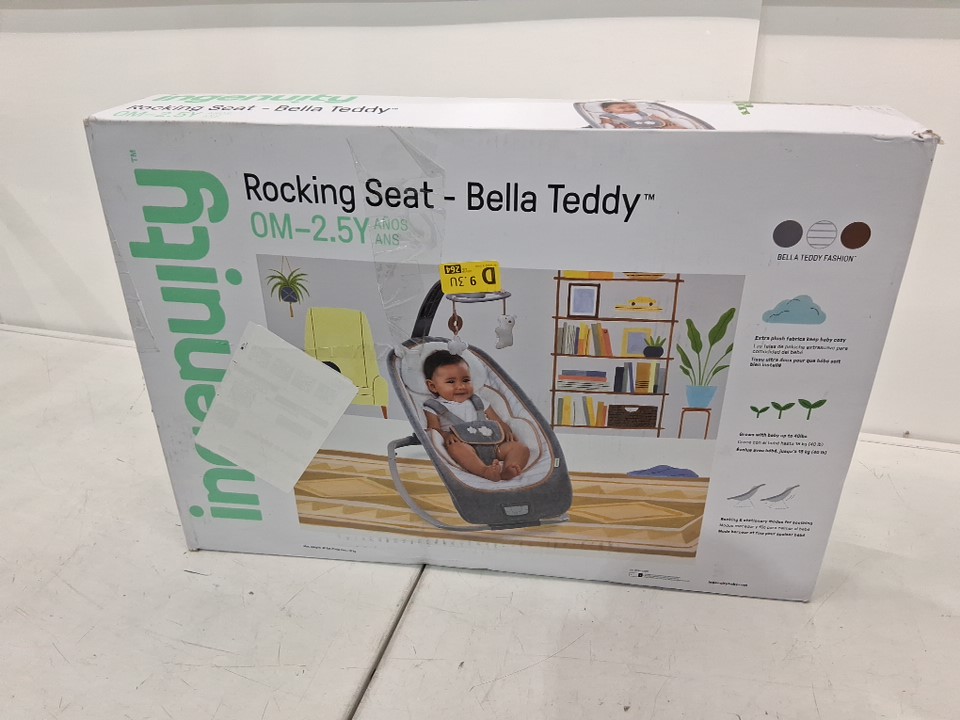 INGENUITY BOUTIQUE COLLECTION ROCKING SEAT Bella Teddy FOR BABY - 0 Months to 2.5 Years - WHITE/GREY (MODEL: 10986-EES)