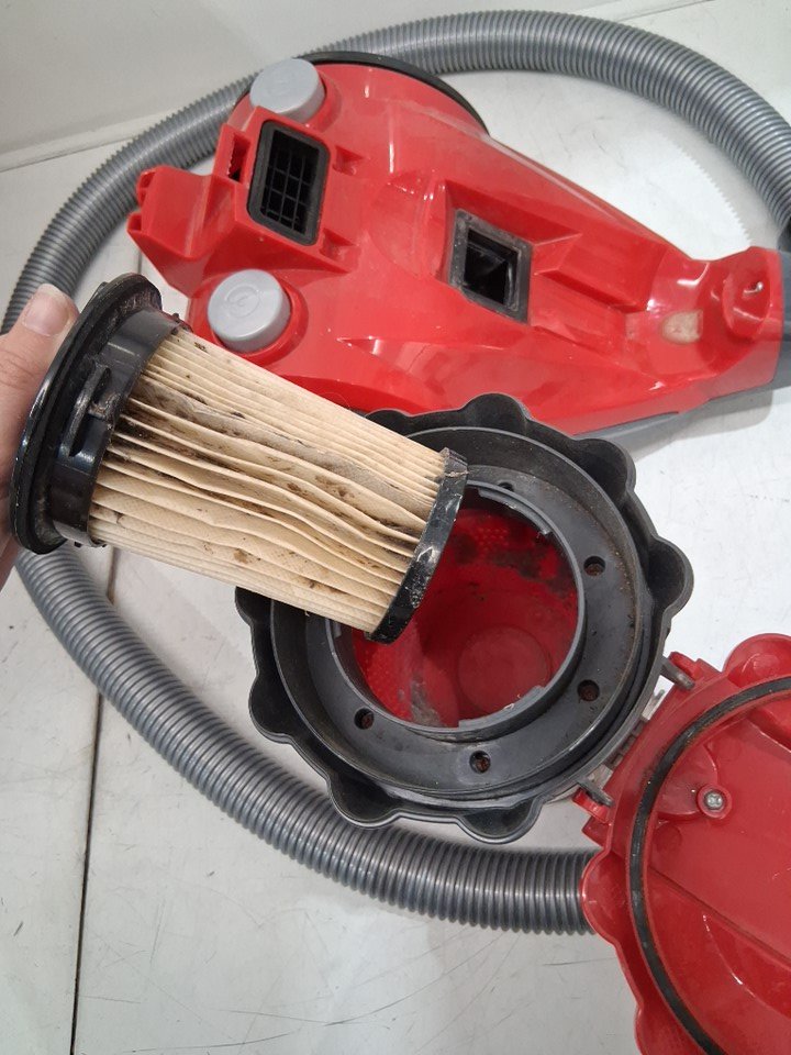 Dust in cannister, and throughout the machine, rust on the end of one attachment, power was tested