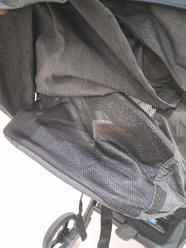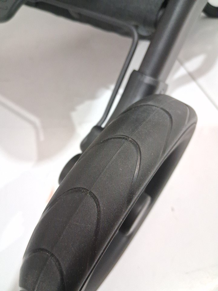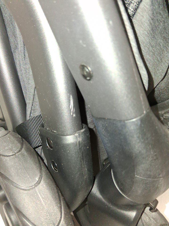 item tags still attached to straps, item had a very small amount of sand on the handle and one small scuff on the frame but we believe this to be from shipping as opposed to use as the wheels are clean and the wheels are clean