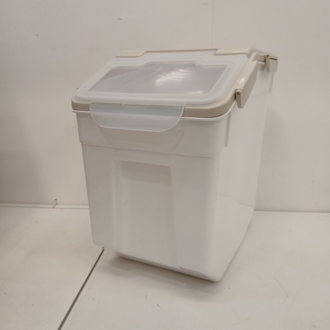 QIVENO 40LB LARGE STORAGE CONTAINER WITH LID FOR FLOUR, RICE & GRAINS - WITH MEASURING CUP & SCOOP - OFF WHITE