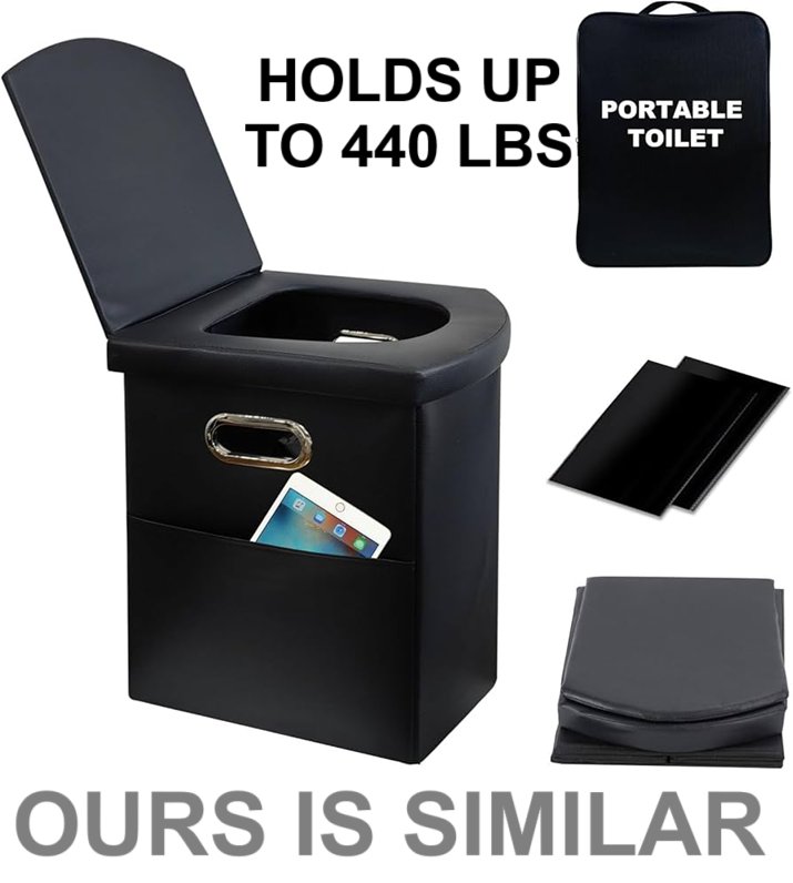 Viouprs Foldable Portable Camping Toilet with Waste Bags and Travel Bag - Holds Up to 440 LBS - Black