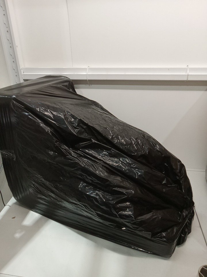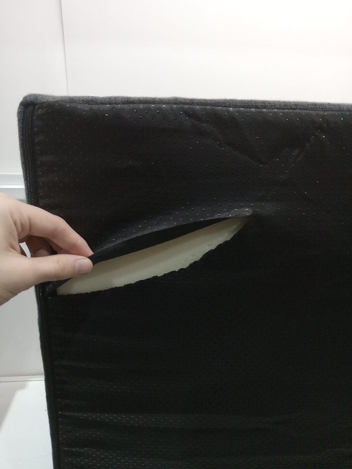 Cut in the non-slip bottom, likely does not affect function. Has some pet hair on it from previous use.