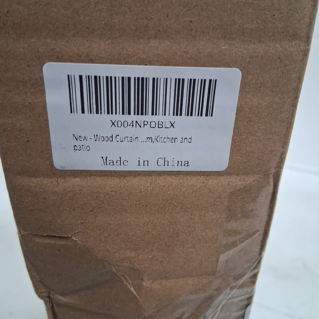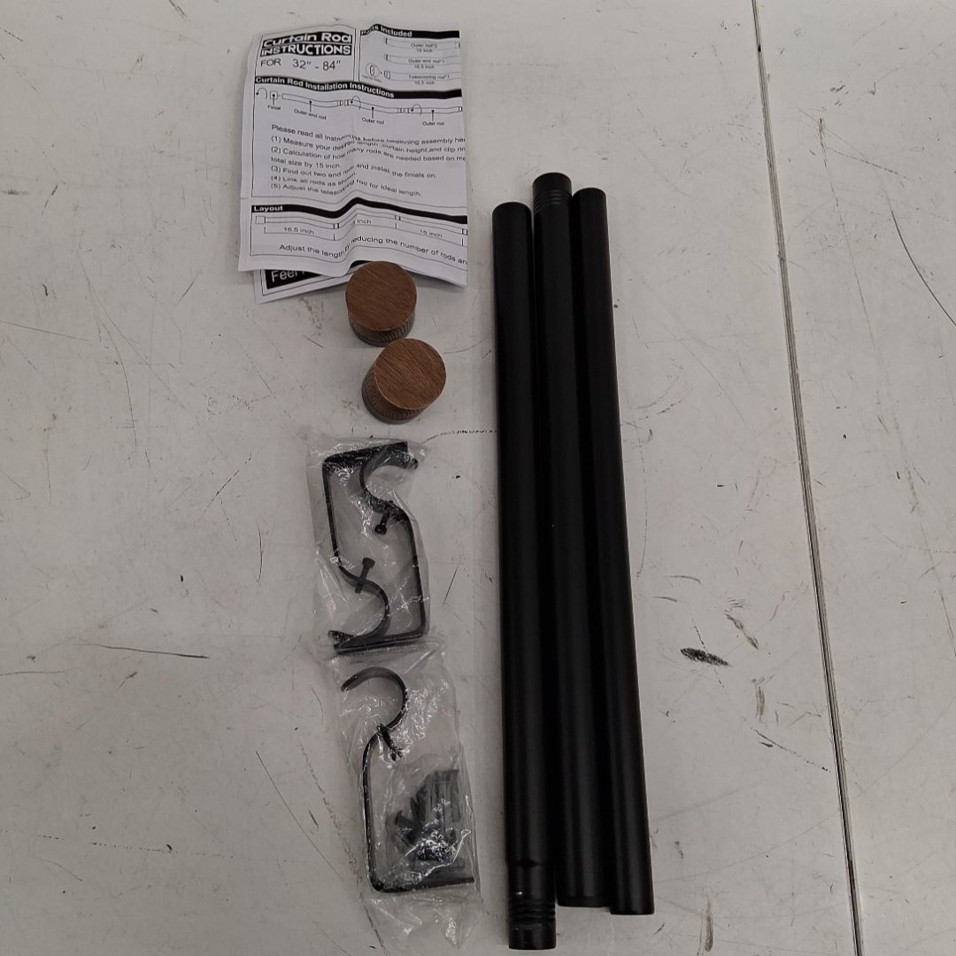 QITERI adjustable Curtain Rod with Imitation Wood Grain Finials- 32" - 84" - 1"D - black
