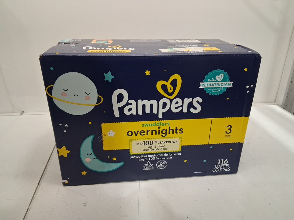 116pk PAMPERS SWADDLERS OVERNIGHTS DISPOSABLE DIAPERS - Size 3 (16-28LBS)
