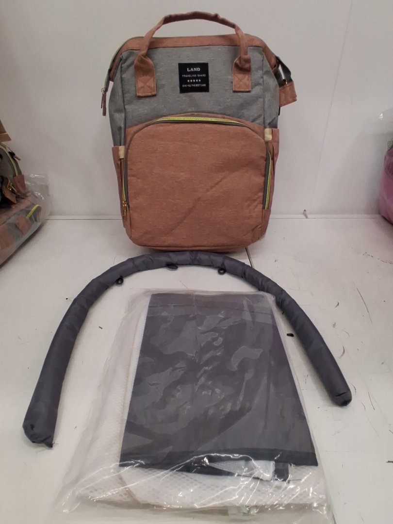 BABIES 3-IN-1 land travelling share diaper bag AND MINI PLAYPEN- 12" X 8" X 16"- PINK/GREY