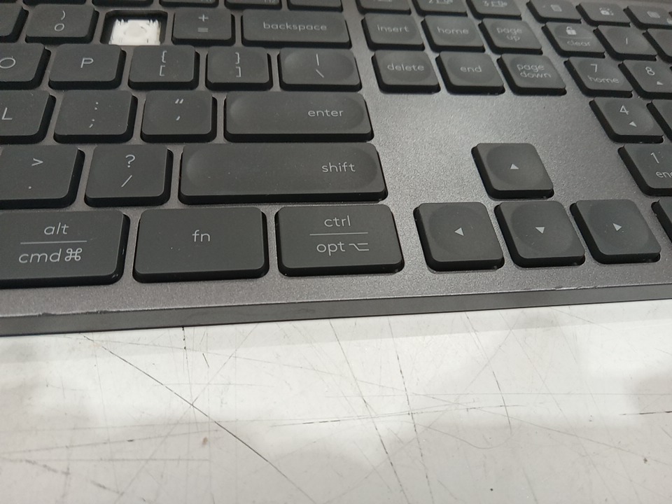 Please note that the key located after "0", (the underscore/minus key) is missing from the original packaging. There are also scratch marks on the lower sides and the back of the keyboard from previous use. Tested for power and functionality. (Please see photos)