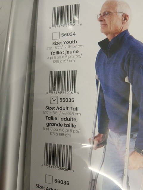 2pc bios adjustable aluminum crutches - adult Large, for 5'5" - 6'6" - grey (model: 56035)