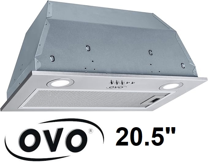 ovo built in hood range - 20.5" - 3 speeds - 280cfm - 4000k - 88w - silver (model: ov-3004)