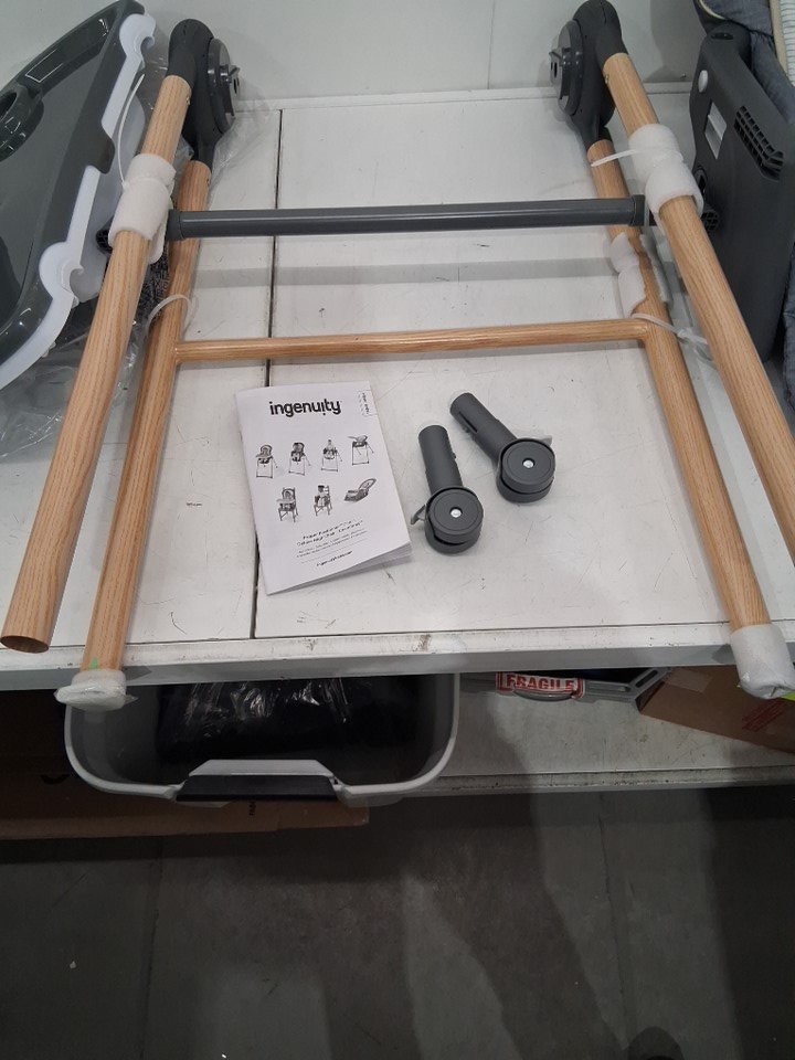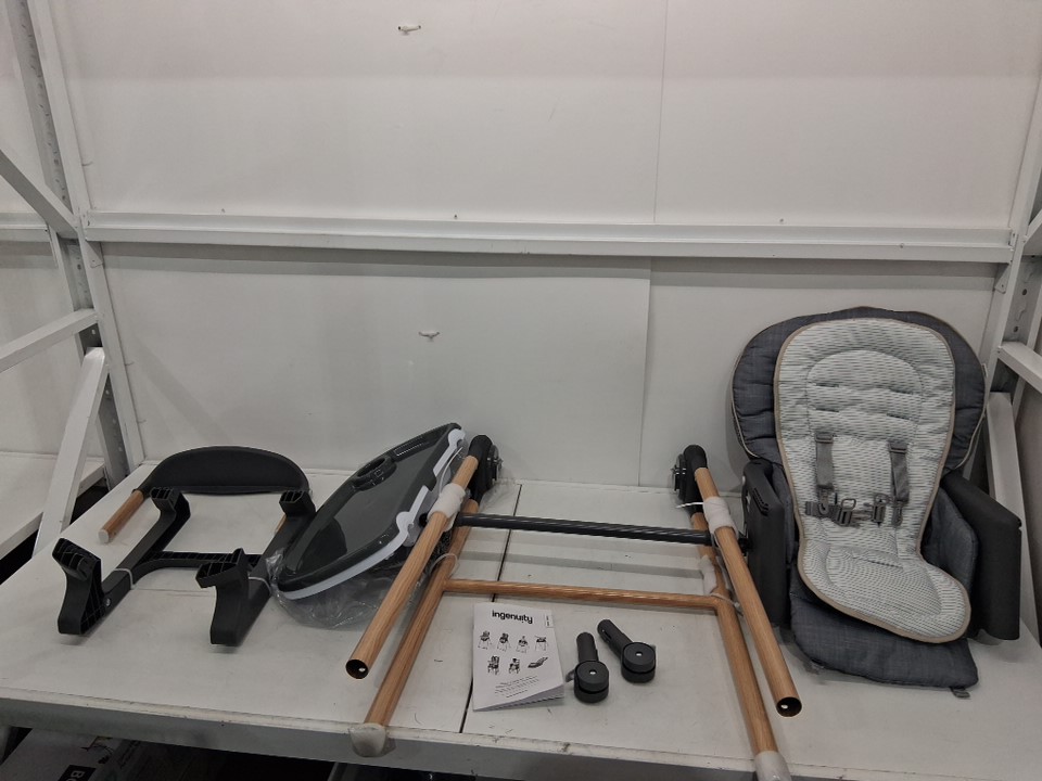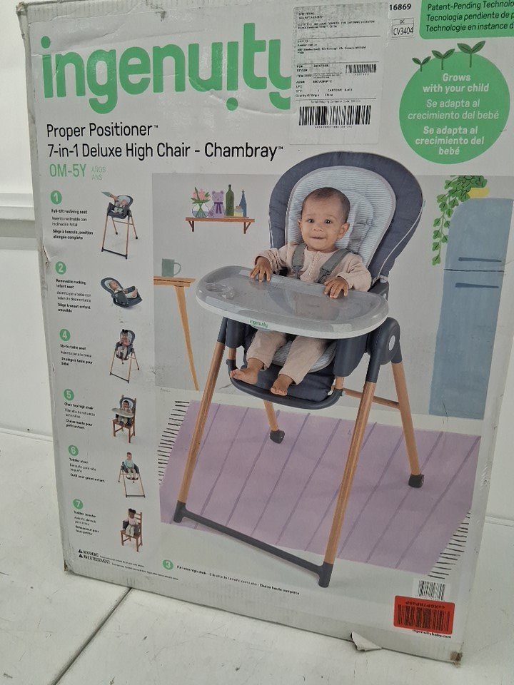 Ingenuity Proper Positioner Deluxe High Chair - 7-in-1 Convertible Baby Seat - Wood/Grey (Model:‎16869)