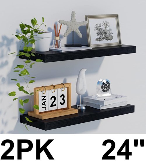 2PK Oak Floating Shelves for Wall - 24" - Black - (MODEL: IU-WS-1167)