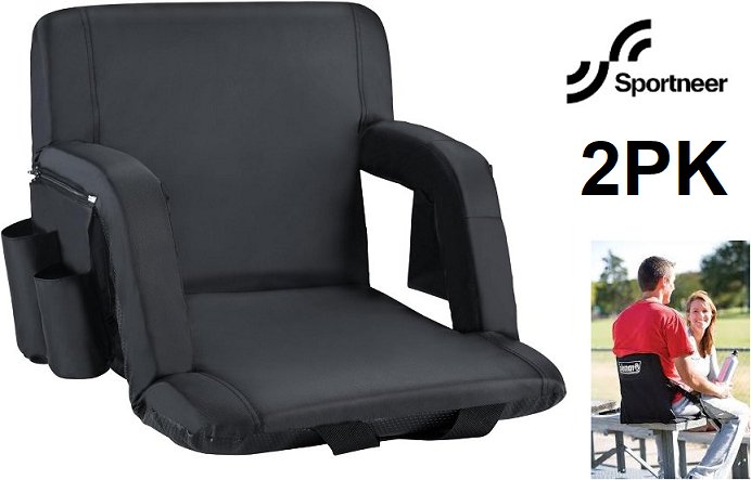2pk sportneer reclining portable stadium seat chair - 20.5" x 31.5" - black - (model: kty-02)