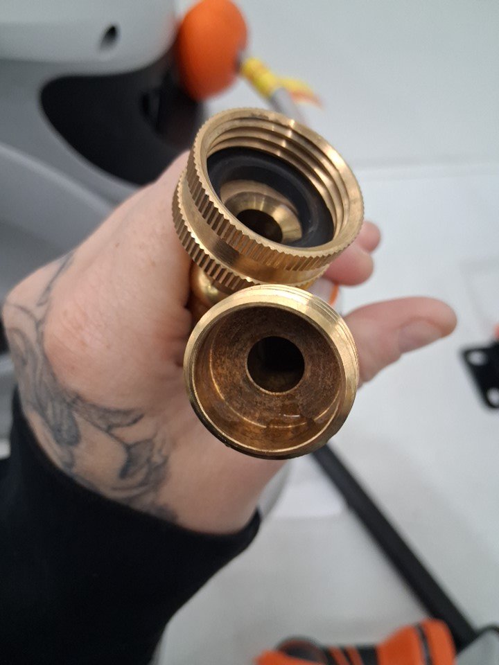 Hose has residue on top of it, Some water still inside, Nozzles look unused