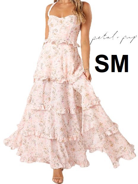 Women's petal and pup Lillee tiered Maxi dress - small - pink floral - (style: MD4696A)