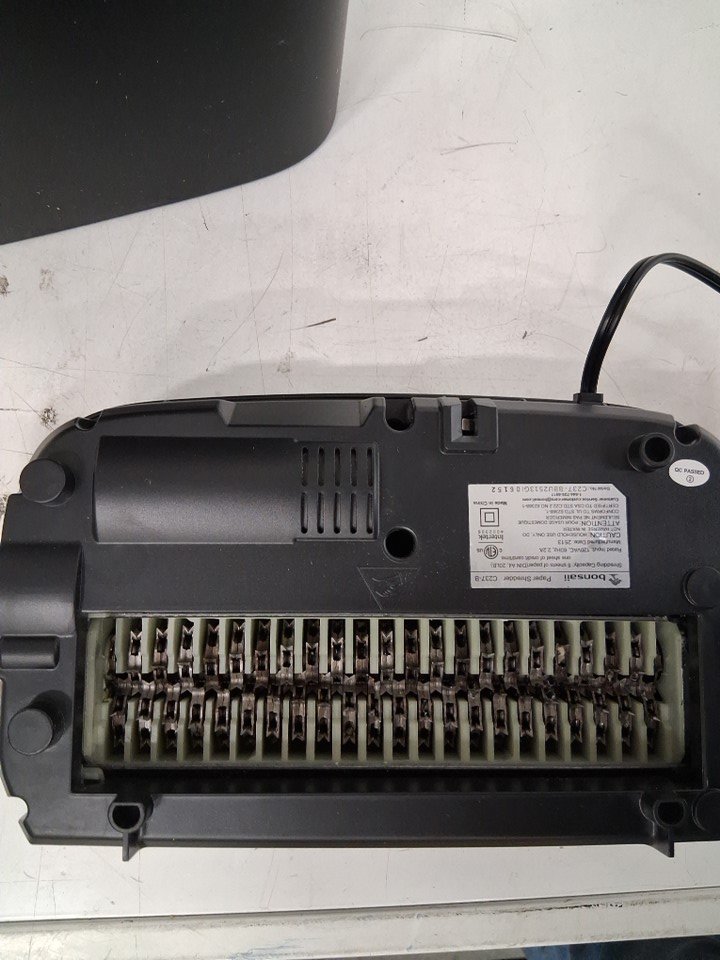 Item was tested for power. There might be some dust/debris on the item from our warehouse inspection. There is no paper debris or signs on use the blades suggesting no previous use