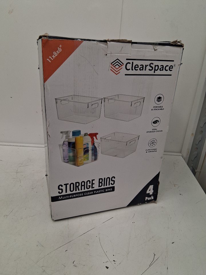 4PK CLEARSPACE PLASTIC STORAGE BINS - 11" x 8" x 6" - CLEAR
