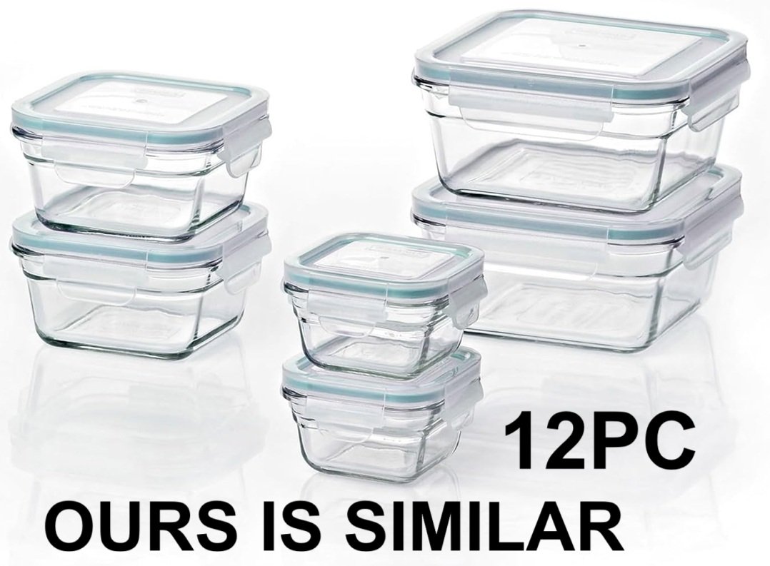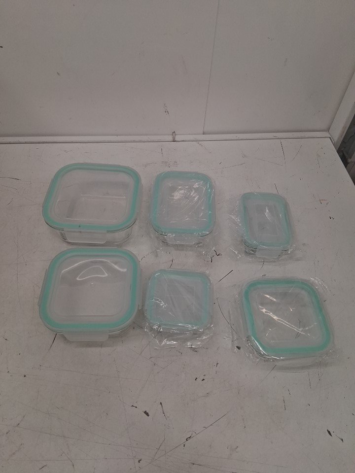 12PC Glass Food Storage Containers WITH PLASTIC LIDS - CLEAR/GREEN