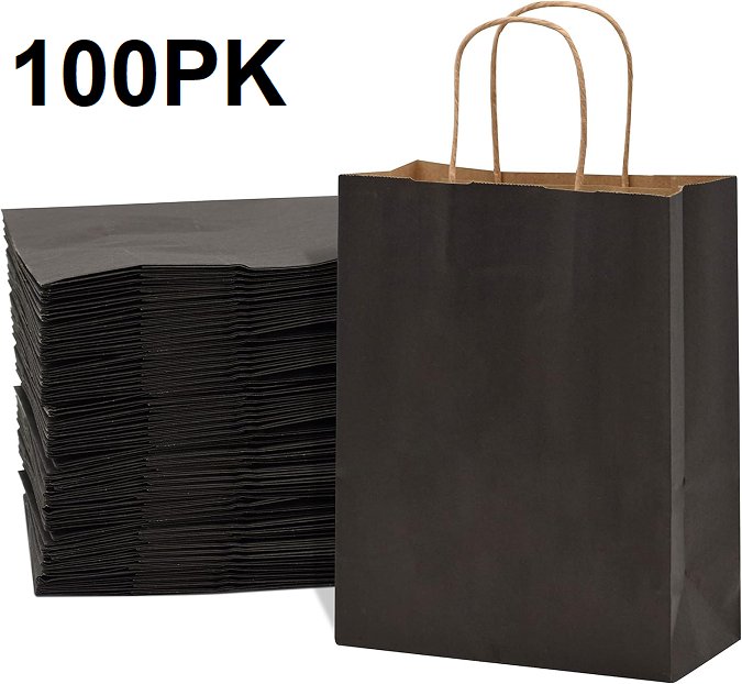 100PK Prime Line Packaging Paper Gift Bags - 10" x 8" - Black