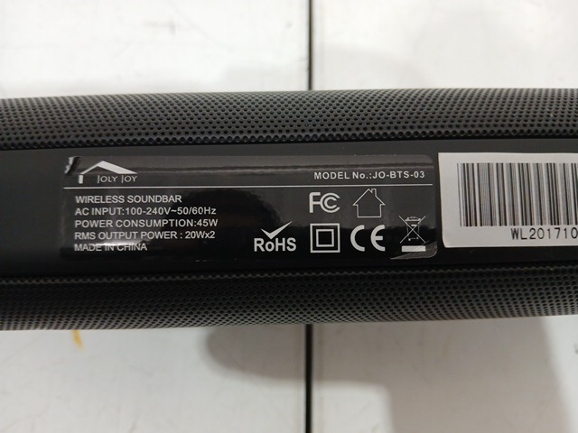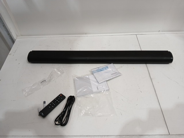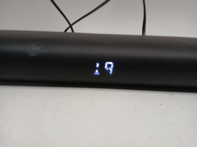 There are scuff marks and scratches on the product indicating prior use. Our remote for the bar is also different. Tested for power.
