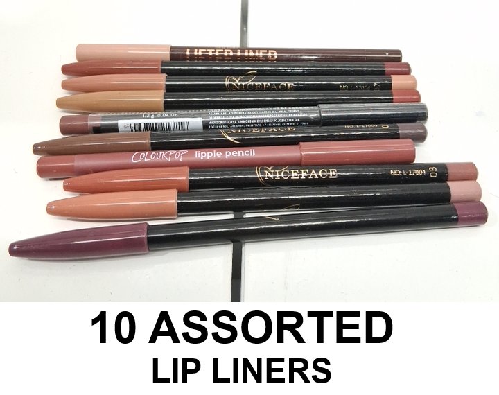 10 ASSORTED LIP LINERS - ASSORTED BRANDS AND COLORS