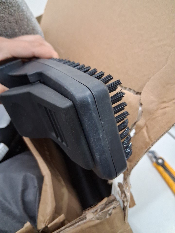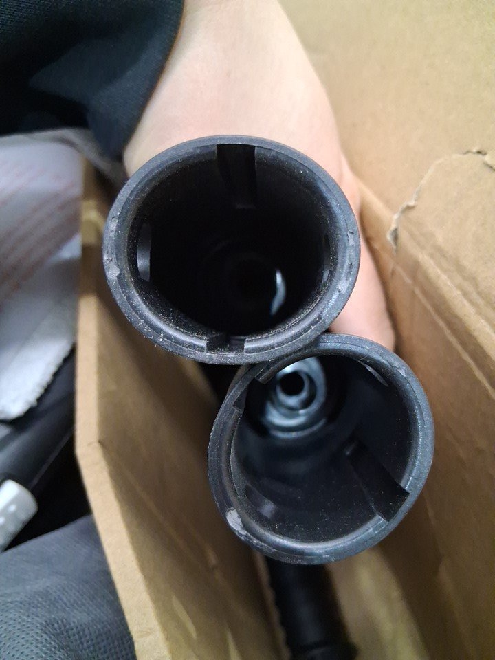 packaging was very damaged in one side therefor we decided to open the item to see if there were any damages to the item, very minor marks on the poles shown in pictures