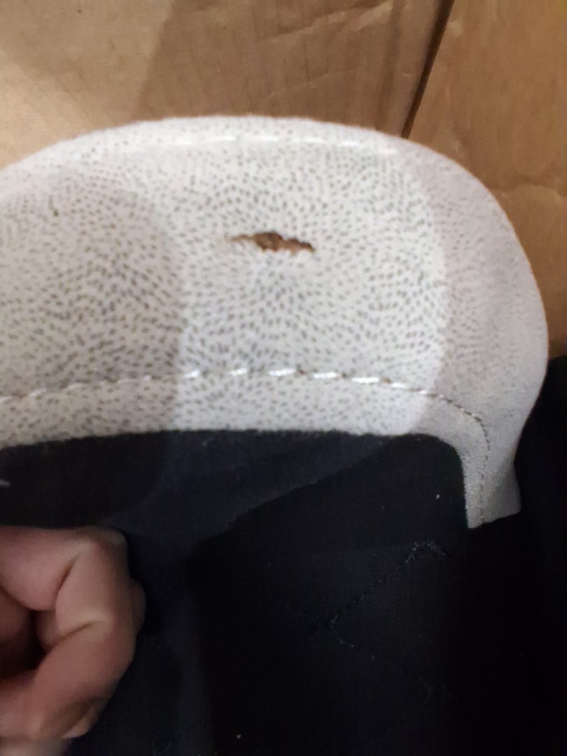Signs of light use, some light scratching on legs/middle support. Dust/dirt on chair cushions/ small tear on bottom right edge of back rest of chair. See photos