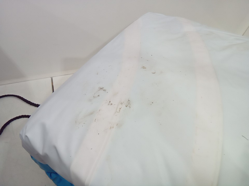there is major dirt and staining on the floatie due to being previously used. item will need to be hosed down before use again. see photos please.