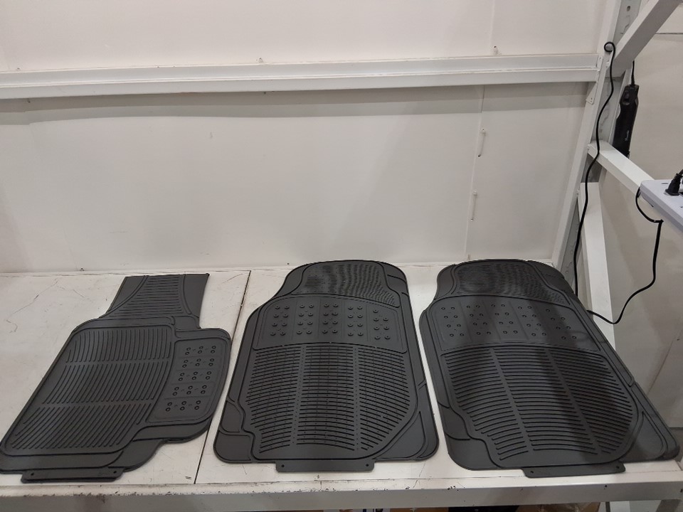3pc amazon basics all season heavy duty universal full set rubber floor mats for cars, suvs and trucks - black