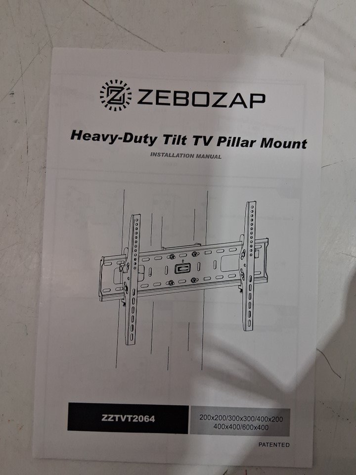 ZeboZap heavy duty NO Drill Tilt TV pillar Mount with straps - holds 120lbs - for 37" - 85" TV's - black (model: ZZTVT2064)