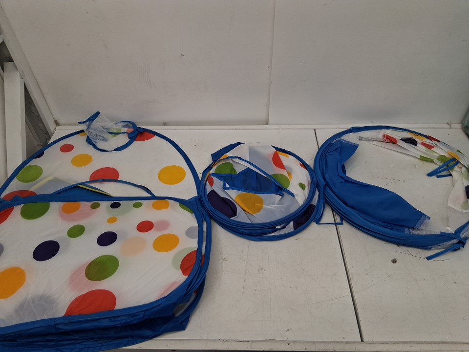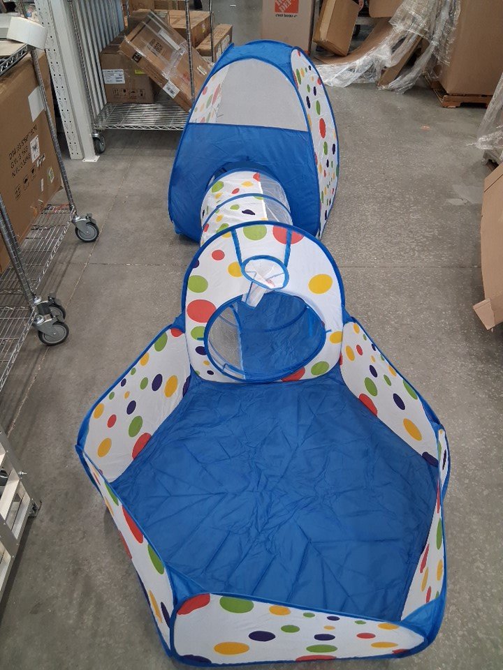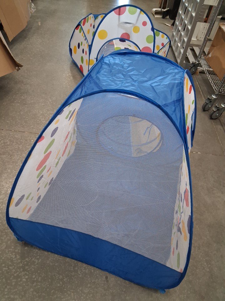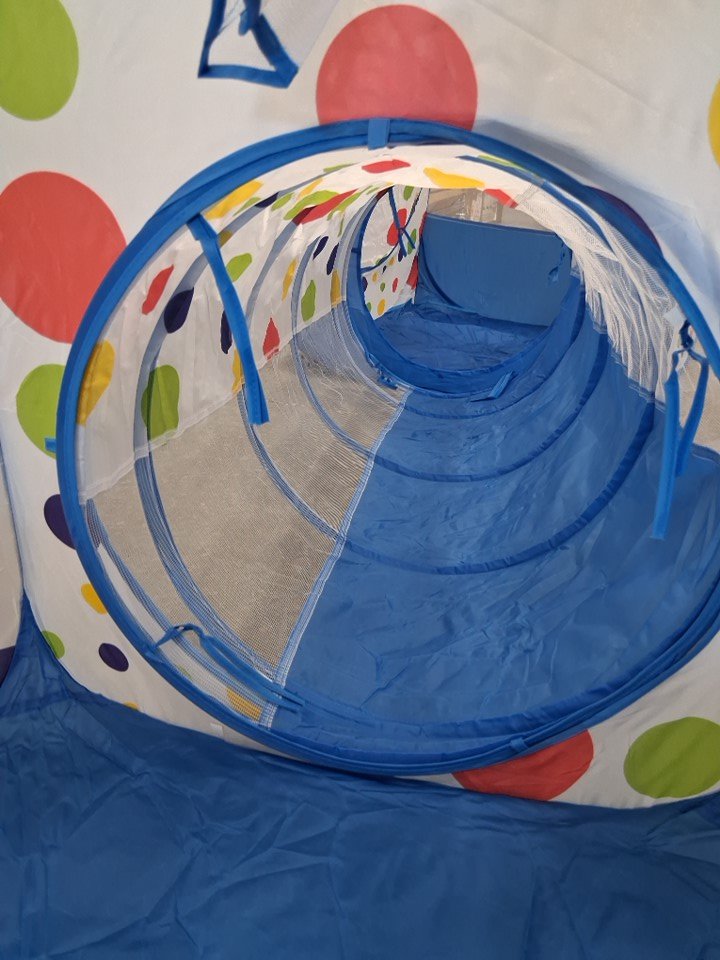 3PC TYMX BABY CRAWLING TUNNEL PLAY AREA WITH BALL PIT And MESH BREATHABLE SIDES - POLKA DOTS/White/Blue