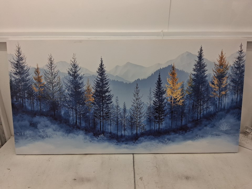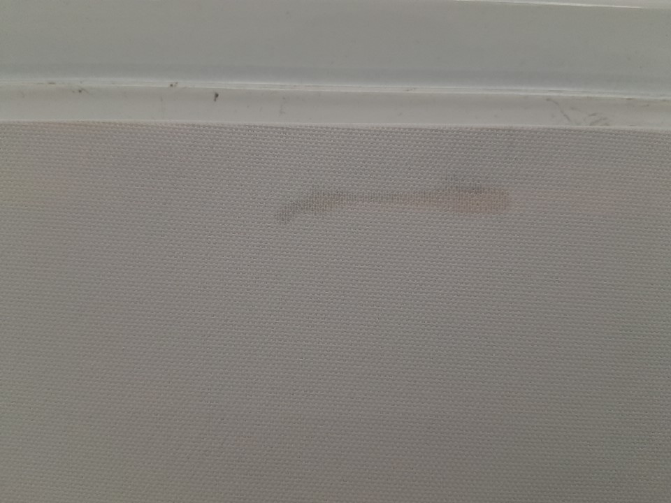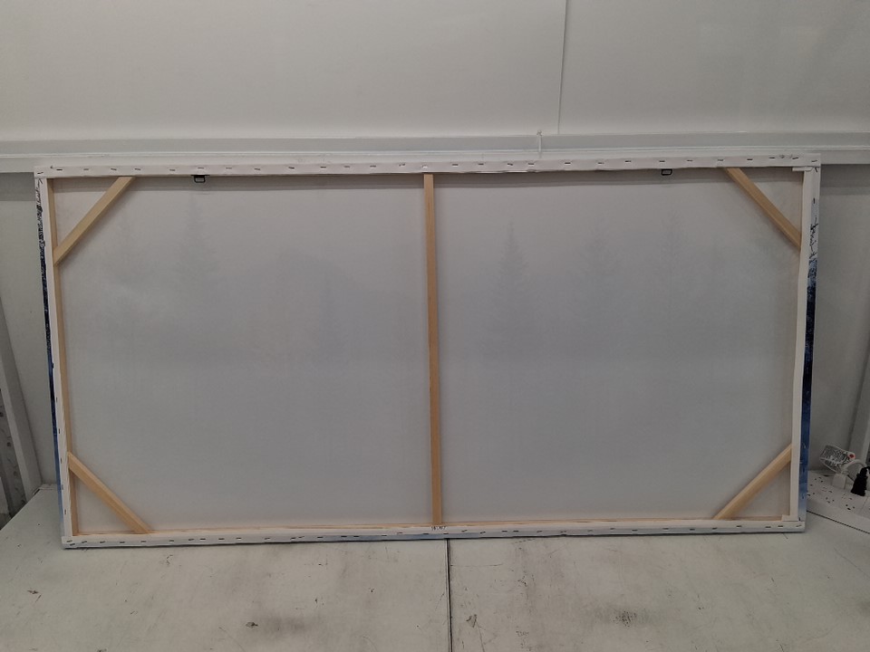 There is a small stain near the top left of the canvas - see photos. Additionally, no hanging hardware is included, only the canvas itself.
