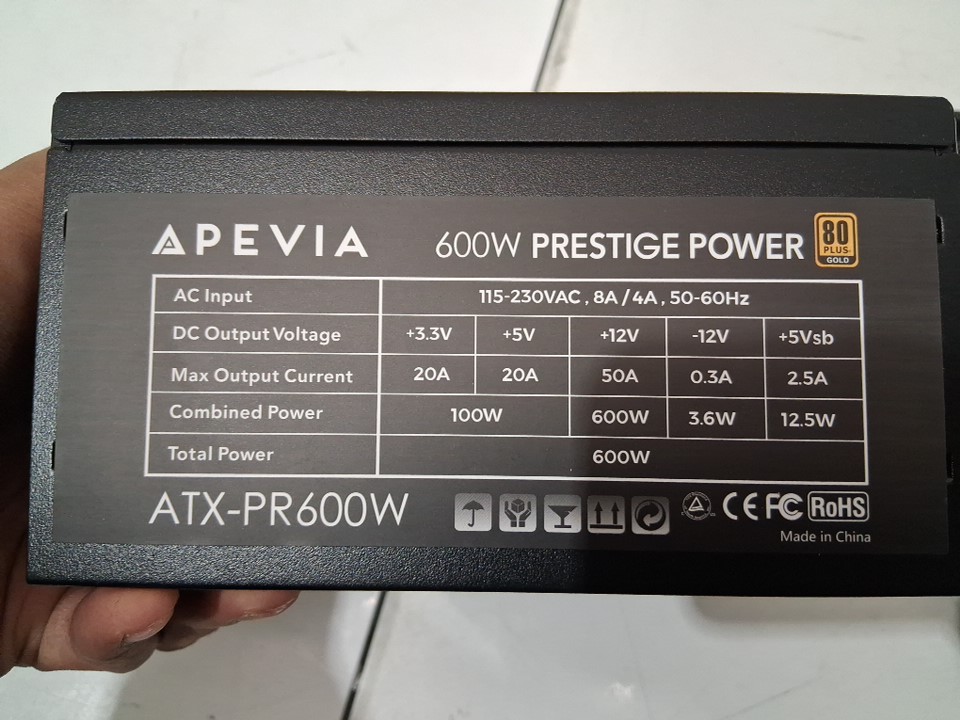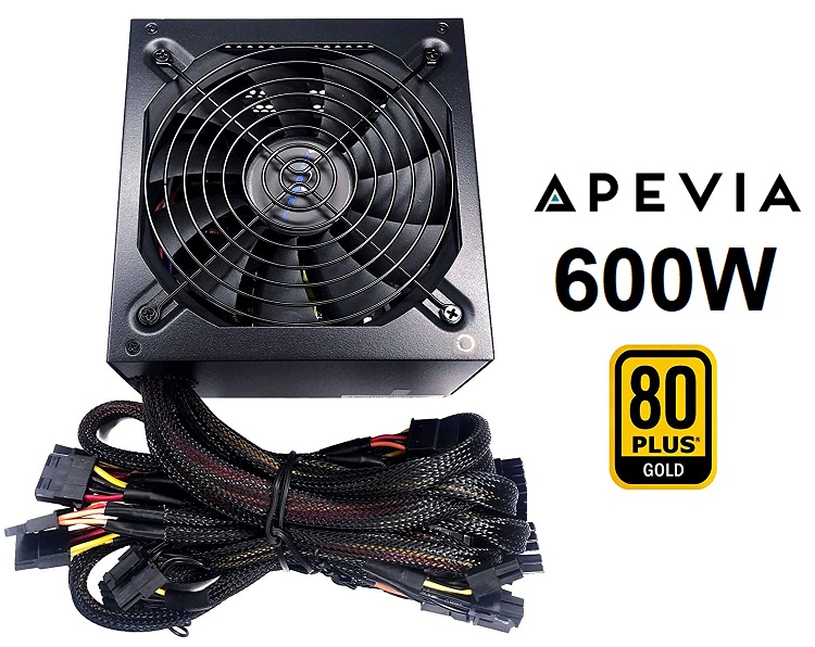 Apevia Prestige 600W 80+ Gold Certified, RoHS Compliance, Active PFC ATX Gaming Power Supply (MODEL: ATX-PR600W)