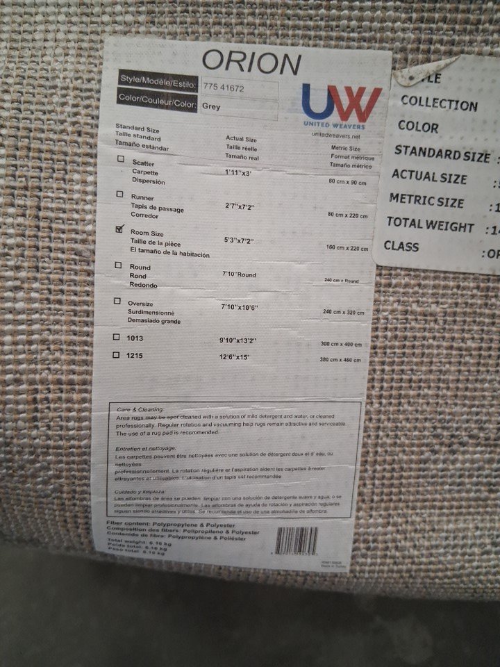 *GENERIC CONDITION STATEMENT* PLEASE BE AWARE THAT THE STOCK IMAGE USED MAY NOT 100% RESEMBLE THE COLOUR OF THE ITEM BEING SOLD. The images used and sizes given are taken from the online retailer. Rug has been inspected by our staff and laid out on our warehouse floor for full inspection and photos. Due to this nature of handling there might be light dirt or dust on the item from handling or storage in our facility at time of pick up.