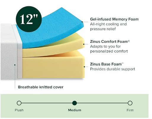 ZINUS 12" Green Tea Cooling Gel Memory Foam Mattress, FULL - WHITE (MODEL: ZU-MFGN1YZI-12F)