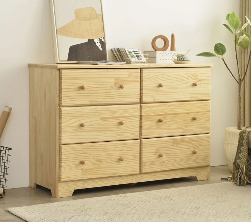 union rustic 6 drawer solid wood double dresser - 48"w x 17"d x 32"h - natural wood