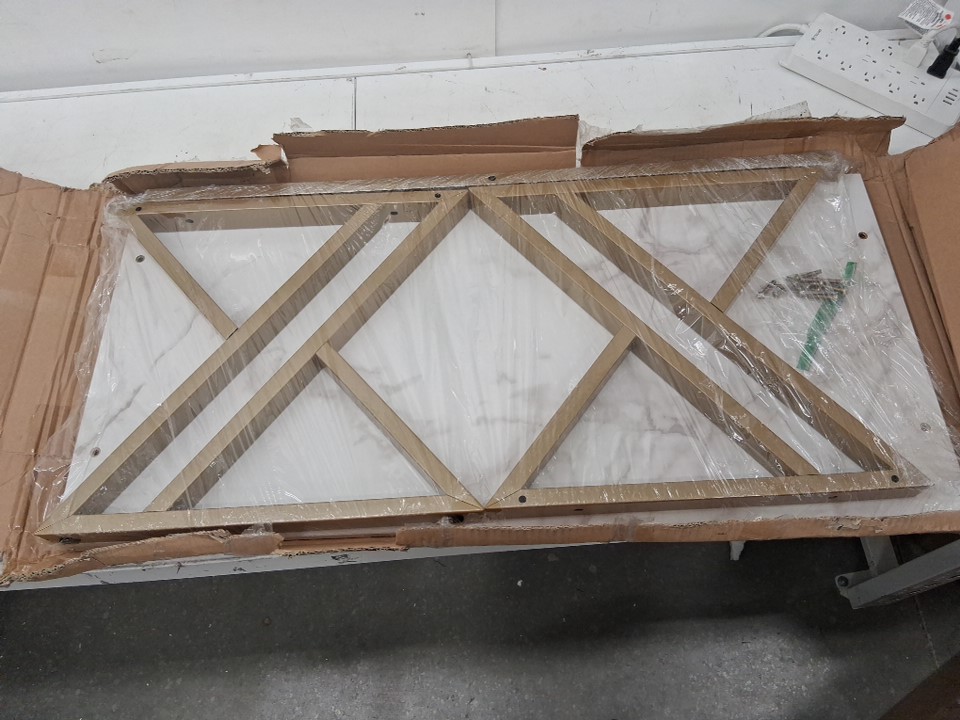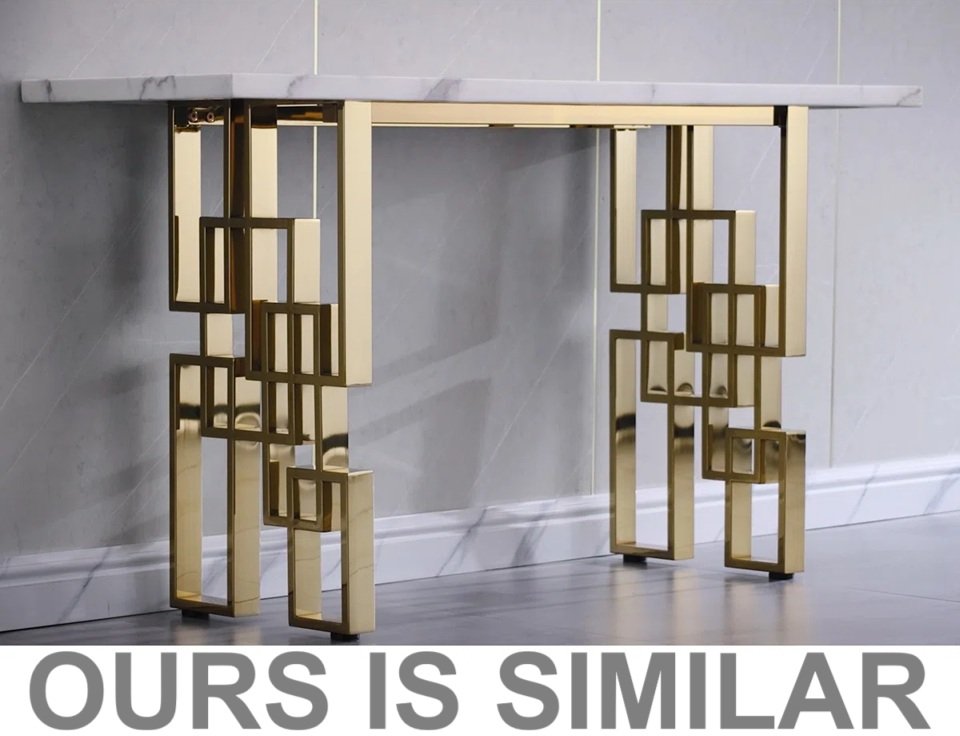 faux marble console table with abstract legs - 40"L x 18"W x 20"H - white w/ gold legs