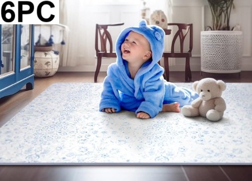 6pc eva foam puzzle mat tiles - 4FTX 6FT OVERALL - blue/WHITE (MODEL: BPM-009-06)