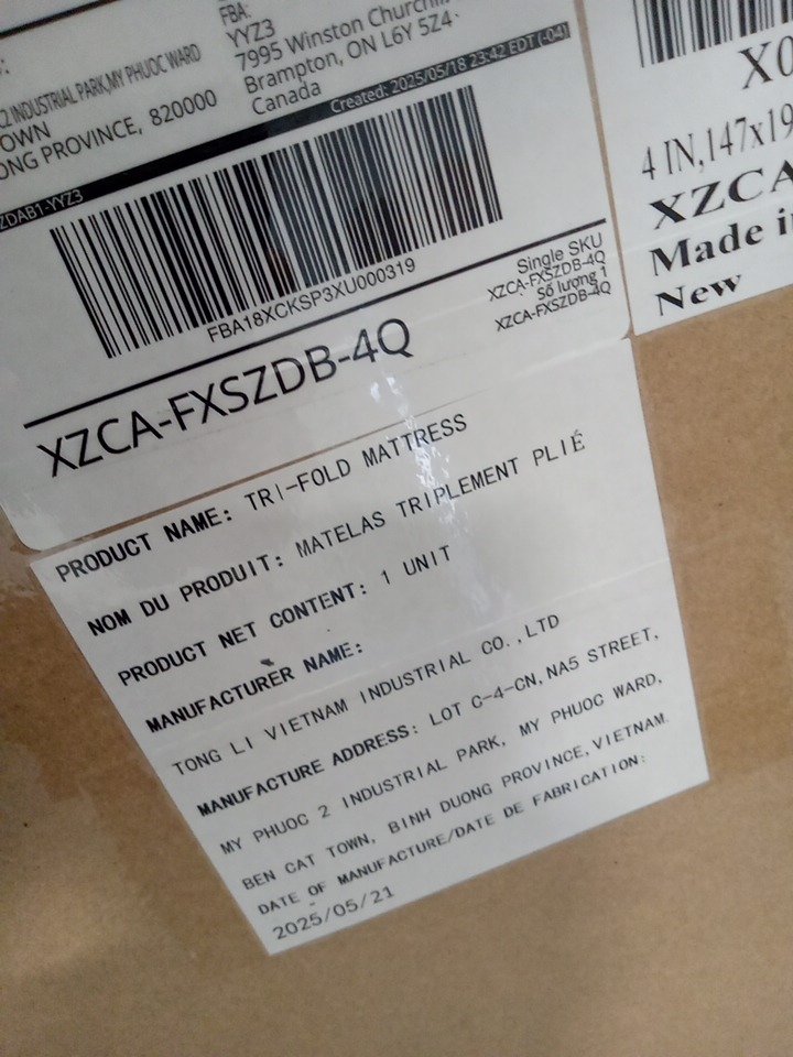 TRI FOLDING 4" MATRESS WITH COVER AND NON-SLIP BOTTOM - QUEEN - WHITE/GREY (MODEL: XZCA-FXSZDB-4Q)