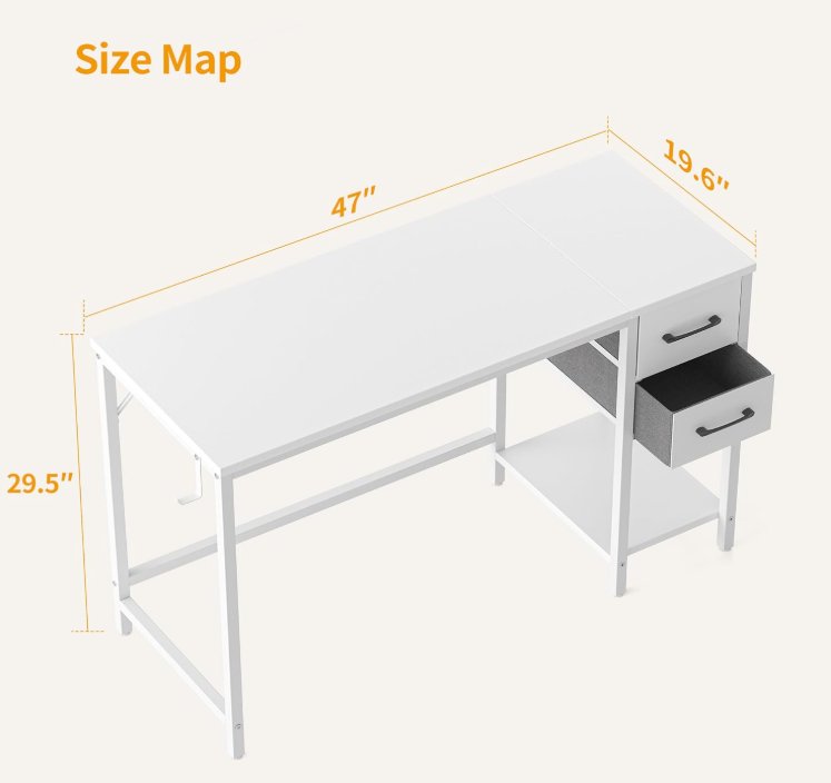 Cubiker simple modern style Computer Desk for Home Office with metal frame and fabric drawers - 40" x 20" x 29" - white - (model: dlct)