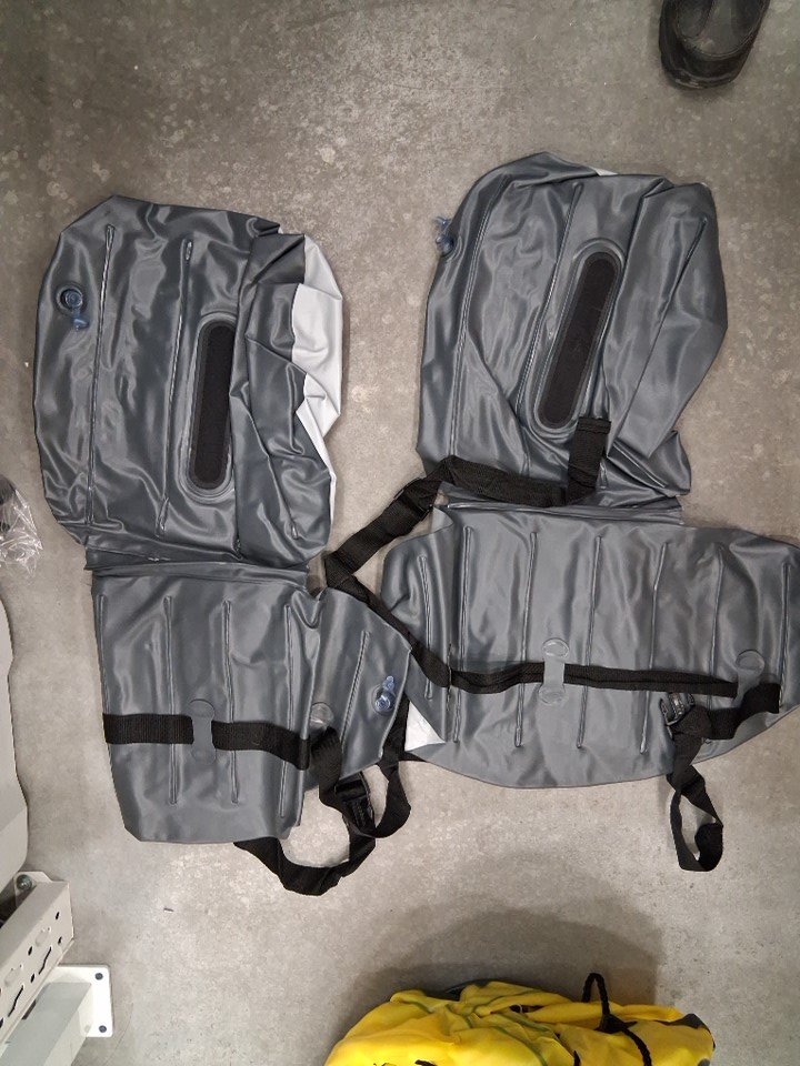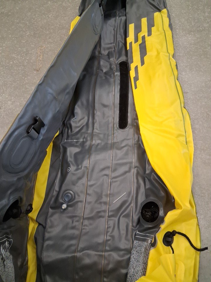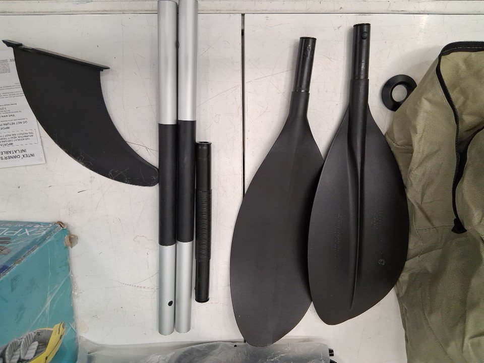 Please note that the item has some light debris (Grass/Leaves) consistent with light previous use. There are some scuffs on the pump also signaling previous use There is only one oar included The fin has some scratches also presumably caused during previous use