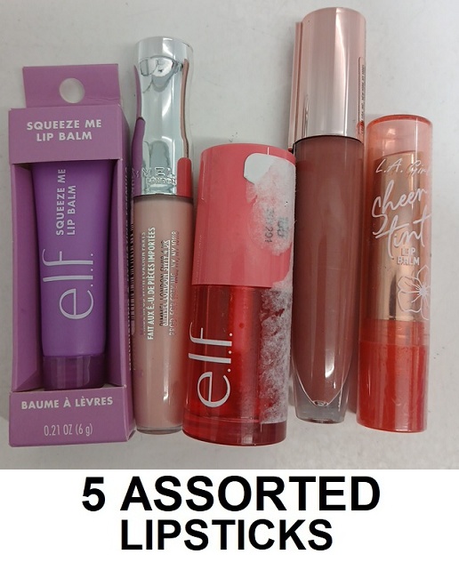 5 assorted lipstick - ASSORTED COLORS, BRANDS and sizes