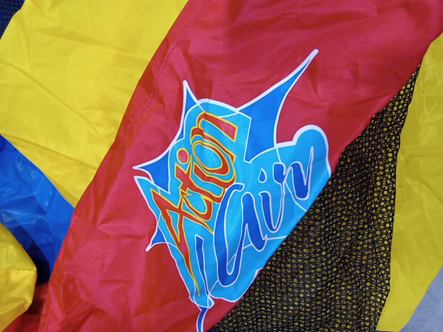 ACTION AIR INFLATABLE BOUNCE CASTLE WITH SLIDE - 7.1FT x 5.1FT x 4.6FT - YELLOW/BLUE (MODEL: 9309Y)